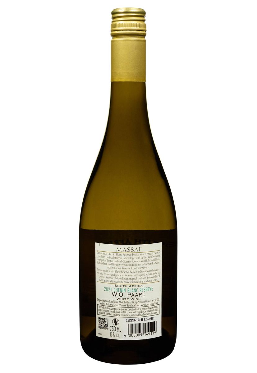 Виноград собирают вручную в январе–феврале на пике зрелости. Производство включает мягкое прессование, ферментацию в стальных чанах при 12–15°C для сохранения свежести и частичную выдержку в дубе (3–6 месяцев) для легких ванильных оттенков. Минимальная фильтрация сохраняет природный характер. Цвет — светло-золотистый с зеленоватыми бликами. Сухое вино (менее 4 г/л сахара) идеально для легких ужинов, аперитивов или подарка. Massai Chenin Blanc отмечено наградами за свежесть и баланс.